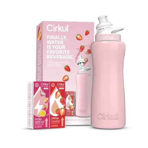 The 32oz. Blush Pink Stainless Steel Bottle & Lid is as blissful as a blushing sunset. This Cirkul Starter Kit includes an insulated bottle that keeps your water ice-cold all day and a flavor cartridge system that makes drinking water more delicious, fun, and personalized.