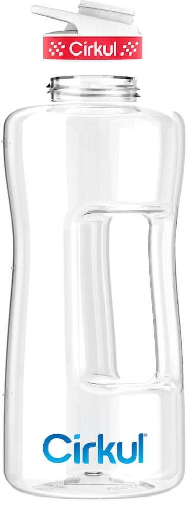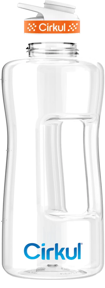 For all lovers of mega hydration, the 62 oz. Plastic Bottle is the perfect addition to your day. This supersized bottle holds nearly half a gallon of water, and despite its impressive size, its built-in ergonomic handle provides comfort and ease of use. Now, reaching your water goals is easily within your grasp!